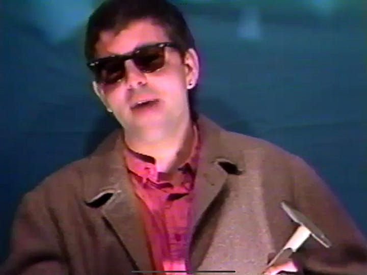 My tape was a film-video collage that retold the Faust myth as a tale situated in domestic violence. It featured DADA theatrics, trash cinema elements, cartoonish humor, and critical theory. These creative and critical forms were passions for me then and they remain so still.